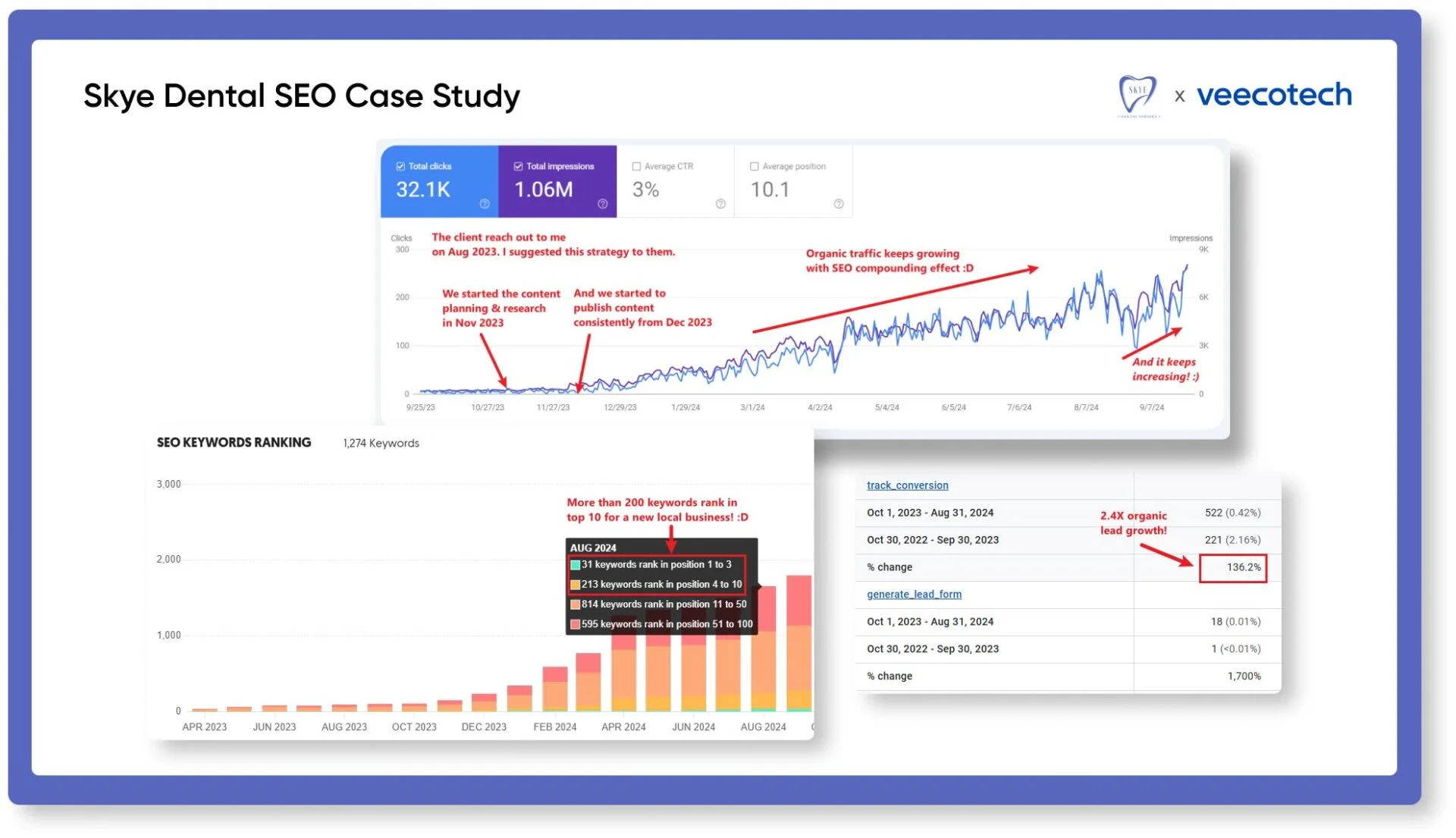 Of course, we still use search intent-driven articles with targeted keywords to drive traffic. You can expect at least 30+ keywords strategically placed across your site.