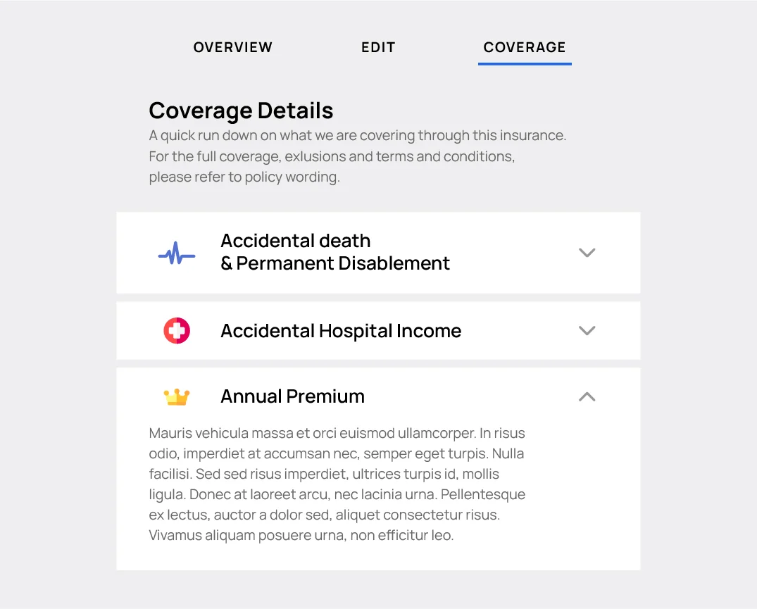 The tab for personal details allows users to store all their insurance information in one safeguarded location.